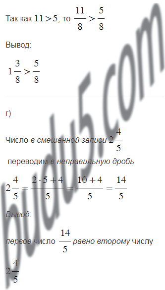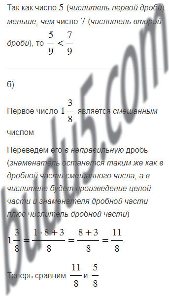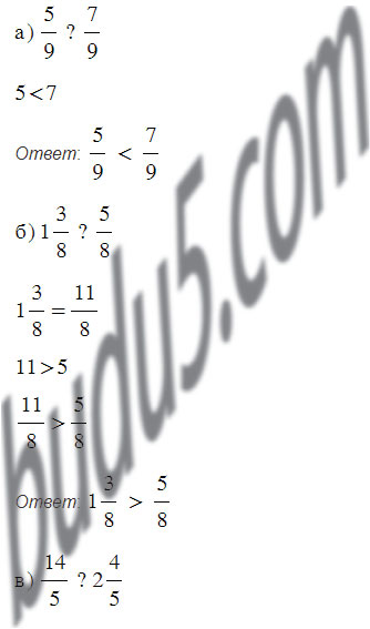 Обратите внимание, что из двух дробей с одинаковыми знаменателями больше та, у которой больше числитель.