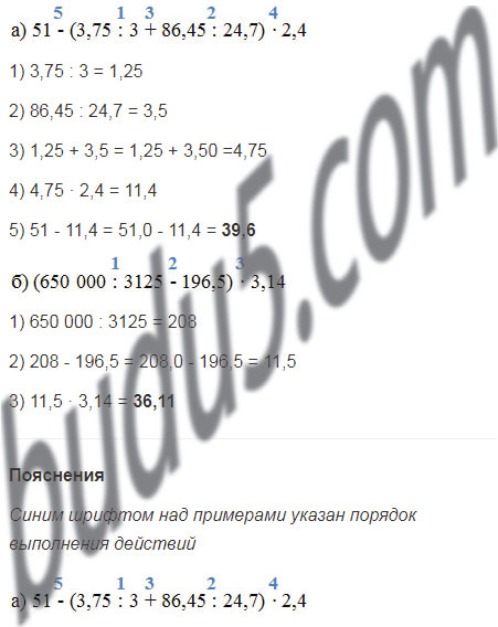 а) 51 - (3,75 : 3 + 86,45 : 24,7) ∙ 2,4;
