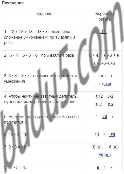| 6. Первый множитель 10, второй — 6. Укажи их произведение. | 16 4 60 |