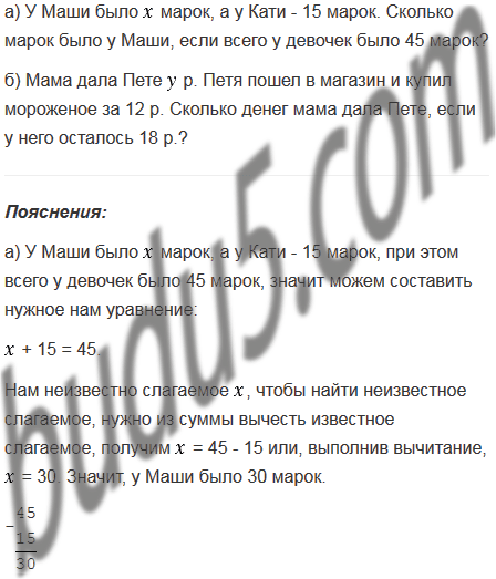 а) + 15 =45;