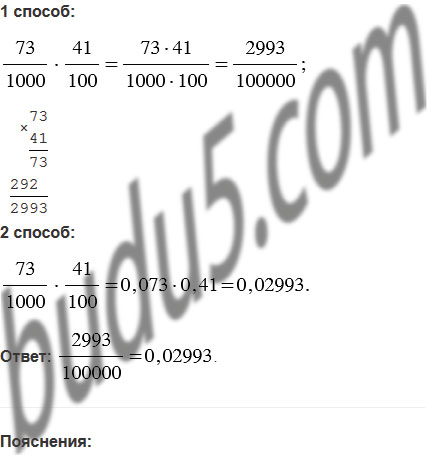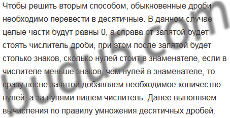 Найдите значение выражения  двумя способами: по правилу умножения обыкновенных дробей и по правило умножения десятичных дробей. Сравните результаты.