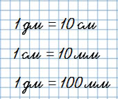 Вспомни, сколько сантиметров в одном дециметре, сколько миллиметров в одном сантиметре, сколько дециметров в одном метре.