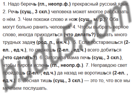 1. Надо береч.. прекрасный русский язык. 2. Реч.. человека может многое рассказать о нём. 3. Чем похожи слово и нож..? Оба могут больно ранить человека. 4. Чтобы выбрать верное слово, иногда приходит. .ся решать много трудных задач.. .  5. Если постараеш..ся, то сможеш., всего добит..ся. 6. Затопила мама печ.., чтобы пироги испеч.. . 7. Неправдою свет пройдёш.., да назад не воротиш..ся. 8. Лесная тиш.. — это то, что все мы мечтаем послушать.