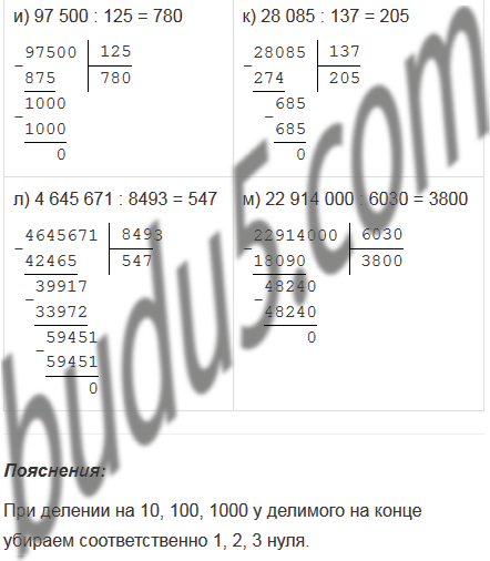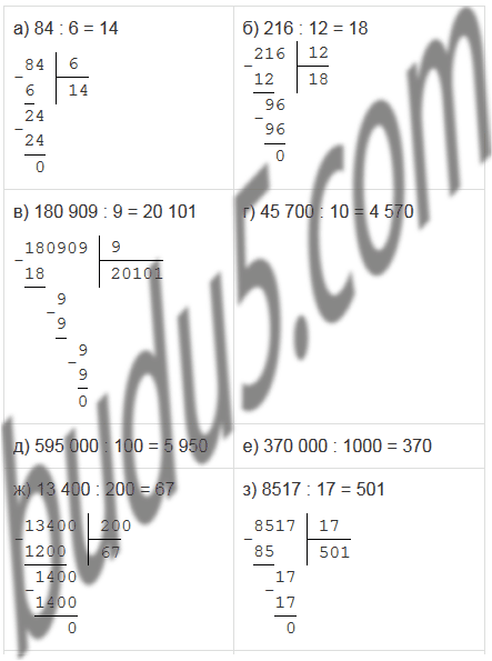 а) 84 : 6; д) 595 000 : 100; и) 97 500 : 125;