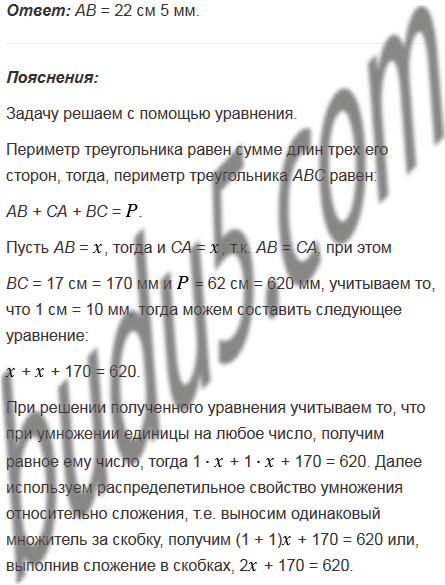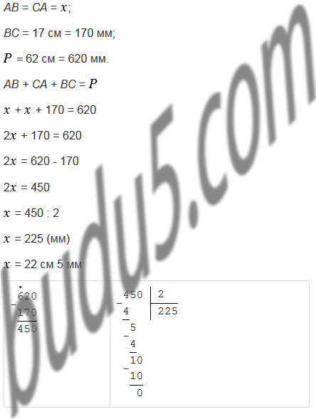 Периметр треугольника АВС равен 62 см. ВС = 17 см, АВ = СА. Найдите длину стороны АВ.