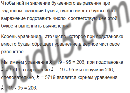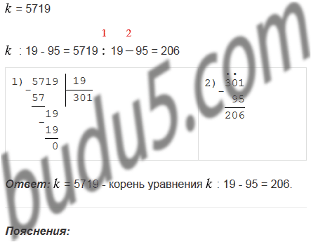 Найдите значение выражения : 19 - 95 при = 5719. Является ли число 5719 корнем уравнения : 19 - 95 = 206?