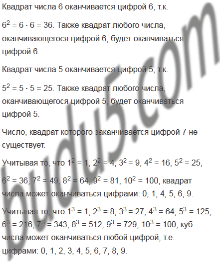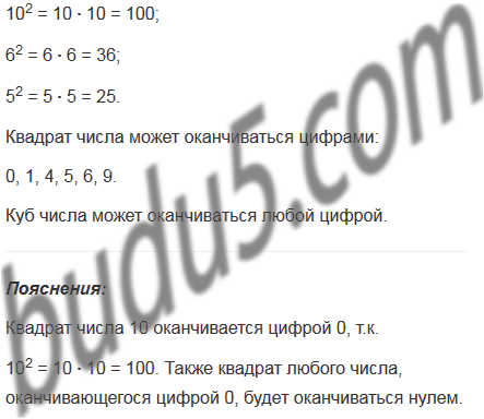 Какой цифрой может оканчиваться квадрат числа? куб числа?