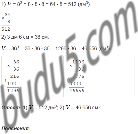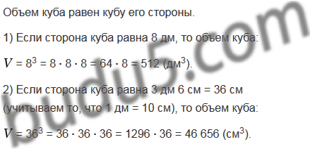 Найдите объем куба, ребро которого 8 дм; 3 дм 6 см.
