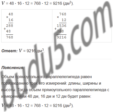 Найдите объем прямоугольного параллелепипеда, если его измерения - 48 дм, 16 дм и 12 дм.