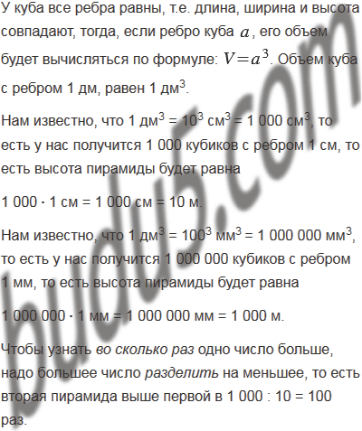 Представьте себе, что один куб с ребром 1 дм разрезали на кубики с ребром 1 см и из этих кубиков сложили башню, поставив их один на другой. Второй куб с ребром 1 дм разрезали на кубики с ребром 1 мм и из этих кубиков так же сложили башню. Какая из этих башен выше? Во сколько раз?