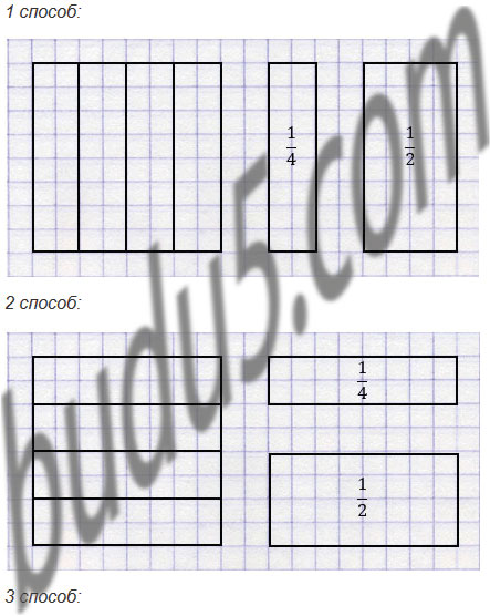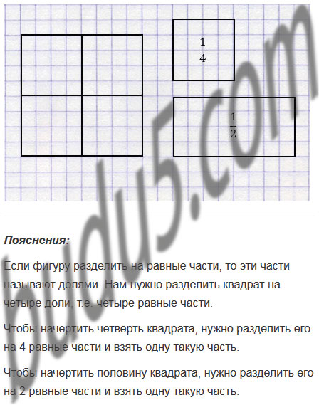 Разделите тремя способами квадрат со стороной 4 см на 4 доли. Начертите четверть квадрата, половину квадрата.