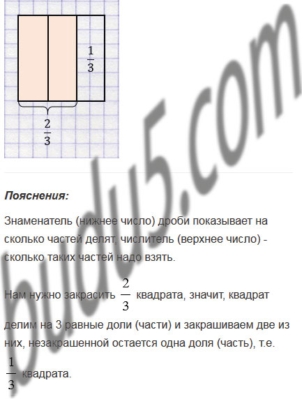 Начертите квадрат со стороной 6 клеток. Разделите его на 3 доли и закрасьте