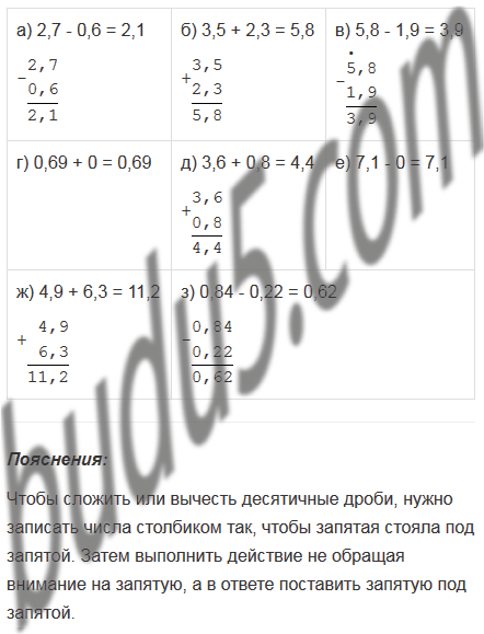 а) 2,7 - 0,6; г) 0,69 + 0; ж) 4,9 + 6,3;
