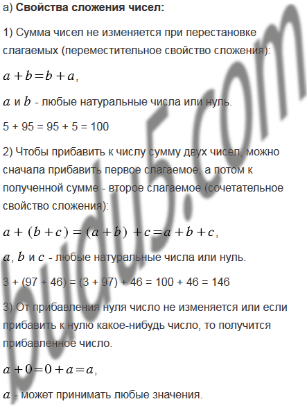 а) свойства сложения чисел;