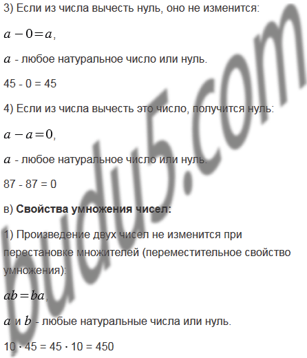 б) свойства вычитания чисел;