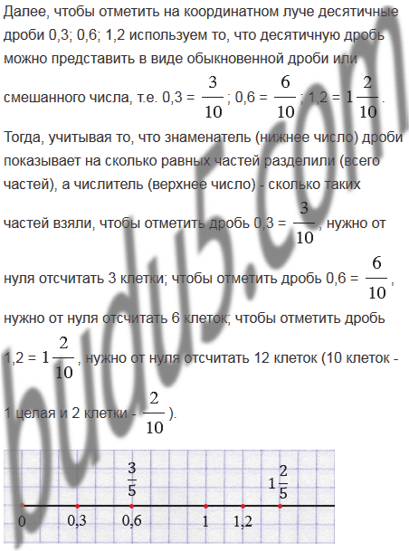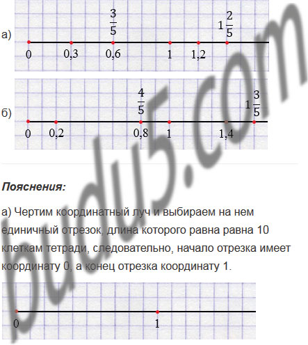 Приняв за единичный отрезок длину 10 клеток тетради, отметьте на луче точки, координаты которых равны: