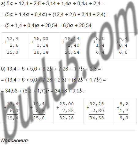 б) 13,4 + 6 + 5,6 + 8,2