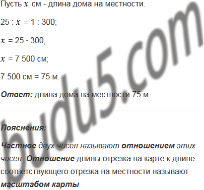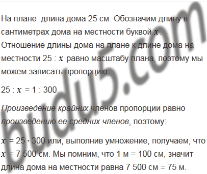 Длина дома на плане 25 см. Чему равна длина дома на местности, если план сделан в масштабе 1 : 300?