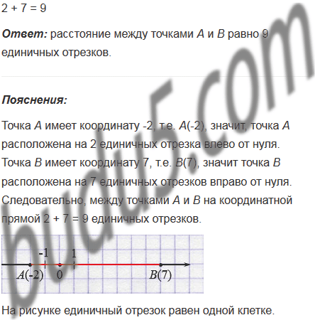 На координатной прямой изображены точки А(-2) и В(7). Найдите расстояние между точками А и В в единичных отрезках.