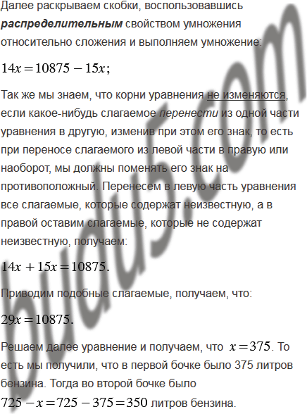 В двух бочках 725 л бензина. Когда из первой бочки взяли