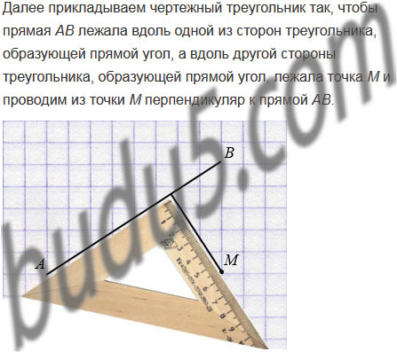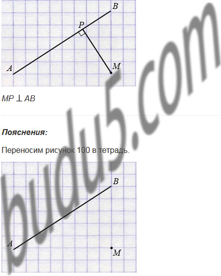 Начертите в тетради прямую АВ и отметьте точку М так, как показано на рисунке 100. Проведите через точку М перпендикуляр к прямой АВ.