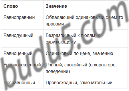Слова для справок: несравненный, равнодушный, равноправный, уравновешенный, равноценный.