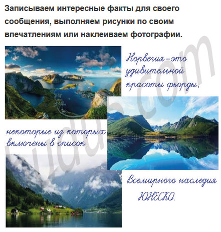 Здесь ты можешь записать интересные факты для своего сообщения, выполнить рисунки по своим впечатлениям или наклеить фотографии.
