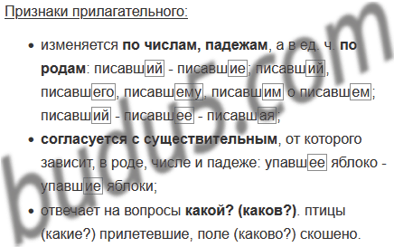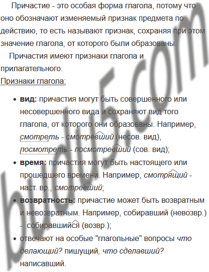 • Опираясь на информацию, представленную в таблице, расскажите о признаках глагола и прилагательного у причастий. Используйте свои примеры.