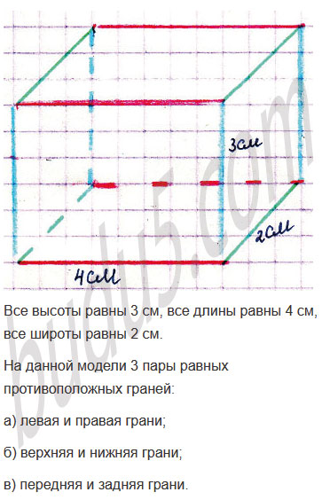 Задание № 13. Покажи на модели прямоугольного параллелепипеда равные грани и равные рёбра. Измерь длину, ширину и высоту своей модели.