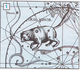 В разные времена года ковш Большой медведицы расположен на небе по – разному. Если через звёзды передней стенки ковша – Мерак и Дубхе мысленно провести линию и, продолжив её, отмерить пять таких же расстояний, то найдём Полярную звезду. Это звезда – компас, она указывает направление на север.