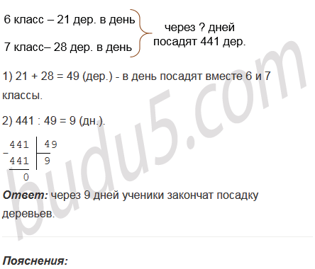 Ученики шестого и седьмого классов решили посадить вдоль дороги 441 дерево. Учащиеся седьмого класса должны сажать 28 деревьев в день, а учащиеся шестого класса - 21 дерево в день. Через сколько дней ученики закончат посадку деревьев, если будут работать одновременно?