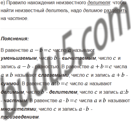 Вспомните правила нахождения неизвестного слагаемого, уменьшаемого, вычитаемого, множителя, делимого и делителя.