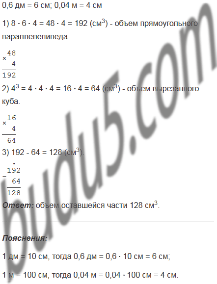Из деревянного бруска, длина которого 8 см, ширина 0,6 дм и высота 4 см, вырезали куб с ребром 0,04 м. Чему равен объем оставшейся части бруска?