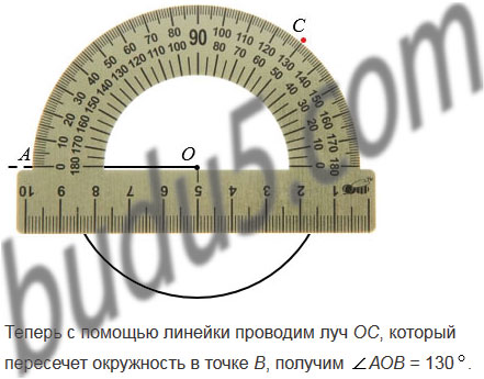 Начертите окружность и постройте два радиуса этой окружности так, чтобы угол между ними был равен 1300.