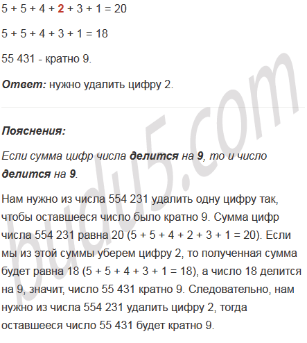 Из числа 554 231 удалите одну цифру так, чтобы оставшееся число было кратно 9.