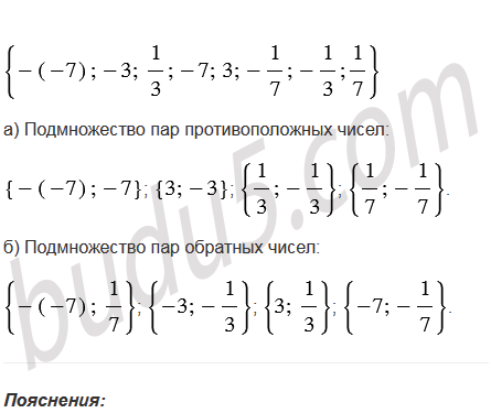 Из множества чисел укажите подмножество пар: а) противоположных чисел; б) обратных чисел.