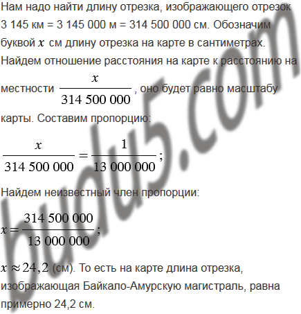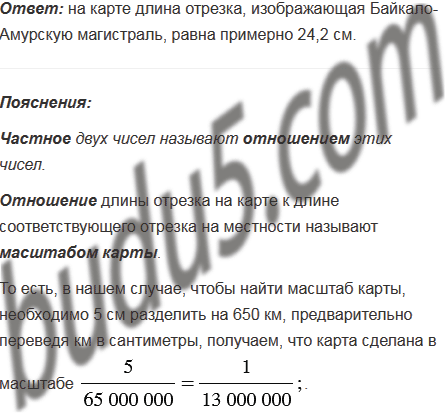 На карте железная дорога Москва - Санкт-Петербург, имеющая длину 650 км, изображена линией длиной 5 см. Какую длину на этой карте имеет линия, изображающая Байкало-Амурскую магистраль, если длина этой магистрали 3145 км?