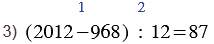 1. если в выражении нет скобок и оно содержит сложение, вычитание, умножение и деление, то сначала выполняют умножение и деление по порядку слева направо, а затем сложение и вычитание по порядку слева направо;