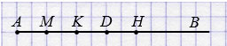 На луче АВ отложите отрезки АМ, МK, KD и DН, длины которых равны 1 см.