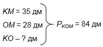 Периметр треугольника KОМ равен 84 дм, длина стороны KМ = 35 дм, а стороны ОМ - 28 дм. Найдите длину стороны KО.