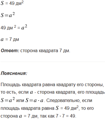 Площадь квадрата равна 49 дм2. Найдите его сторону.