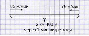 1) 85 + 75 = 160 (м/мин) - скорость сближения.