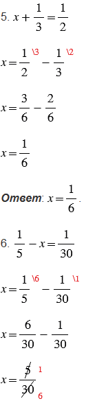 5. Запишите уравнение "сумма "икс" и одной третьей равна одной второй" и решите его.