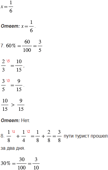 8. В первый день турист прошел одну восьмую всего пути, во второй - четверть всего пути. Значит, за два дня он прошел больше тридцати процентов пути.