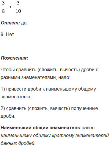 9. Из двух дробей с равными числителями больше та, у которой больше знаменатель.