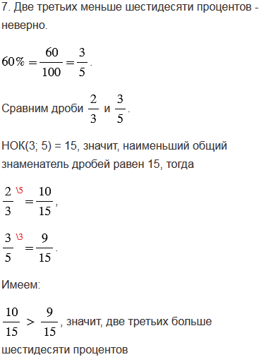 7. Две третьих меньше шестидесяти процентов.