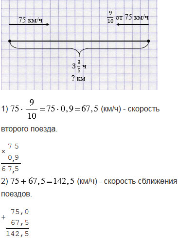 Из двух городов одновременно навстречу друг другу вышли два поезда и встретились через ч. Найдите расстояние между городами, если скорость одного поезда равна 75 км/ч, а скорость другого составляет от скорости первого поезда.