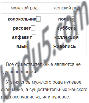 Прочитай слова. Это одушевлённые или неодушевлённые имена существительные? Определи с помощью слов-подсказок он, она, какие из них мужского рода, а какие – женского. Запиши слова в два столбика.